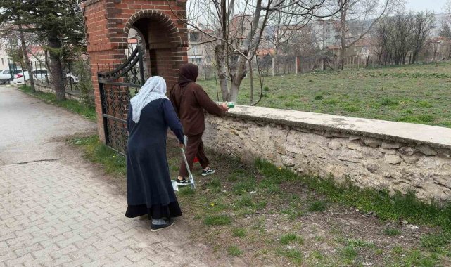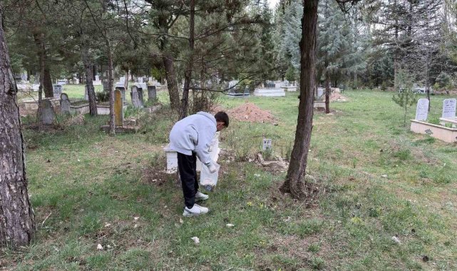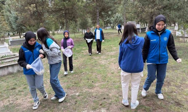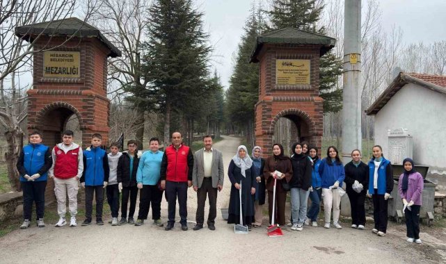 Hisarcık'ta öğrencilerden mezarlıkta çevre temizliği