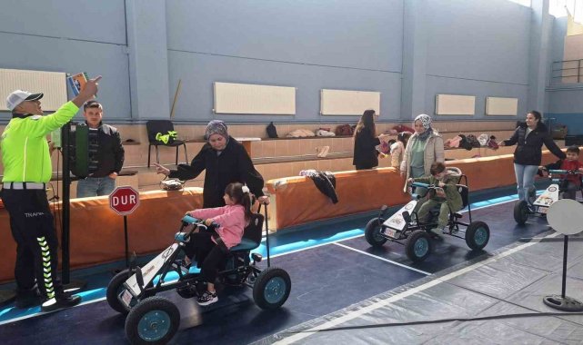 Cumhuriyet İlkokulu Spor Salonu'nda İlçe Emniyet Amirliği ekiplerince kurulan seyyar çocuk trafik eğitim parkında gerçekleştirilen etkinlikte, Kütahya Trafik Denetleme Şube Müdürlüğünde görevli Kıdemli Başpolis Ahmet Kahraman tarafından eğitim verildi. "Bugünün Çocukları Türkiye'nin Yüzyılı" projesi kapsamında düzenlenen eğitim programına Cumhuriyet ve Atatürk İlkokulu ile anaokulu öğrencileri velileriyle birlikte katıldı.
