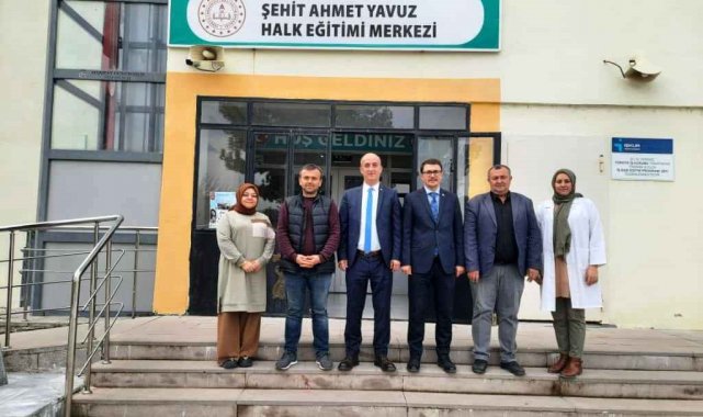İlçe Milli Eğitim Müdürü Hasan Kilitci ve Şube Müdürü Caner Tevfik Tekin, 24 Kasım Öğretmenler Günü kapsamında gerçekleştirdiği okul ziyaretlerinde öğretmenlerle bir araya gelerek milli ve manevi değerleri simgeleyen Türk bayrağı rozeti hediye etti.