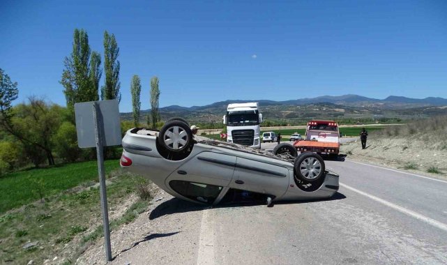 Kütahya'nın Hisarcık ilçesinde sürücüsünün direksiyon hakimiyetini kaybettiği aracın takla atması sonucu meydana gelen kazada 1 kişi yaralandı.