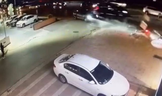 Bursa'nın Nilüfer ilçesinde hızla seyreden bir motosikletli, sağ şeride dönüş yapmak isteyen otomobili geç fark edince direksiyon hakimiyetini kaybederek yol kenarındaki tabelaya çarptı. Kazada metrelerce savrulan motosiklet sürücüsü yaralanarak hastaneye kaldırıldı. O anlar ise güvenlik kamerasına saniye saniye yansıdı.