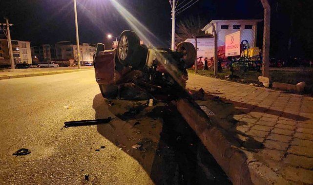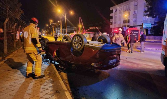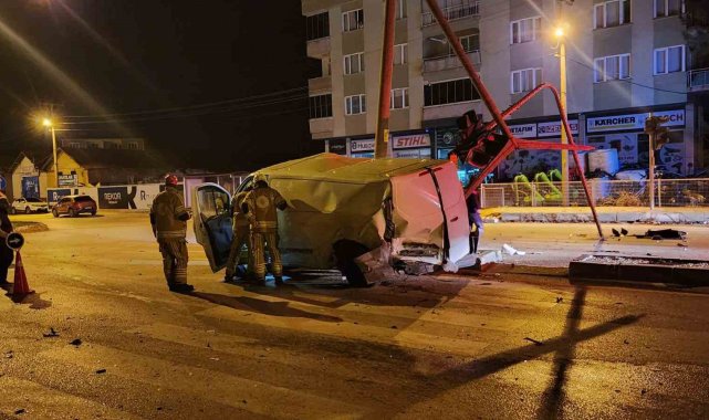 Olay, Bursa'nın Mustafakemalpaşa ilçesinde meydana geldi. Edinilen bilgiye göre, ilçe merkezi istikametine seyir halindeki 16 PU 058 otomobil sürücüsü hızı sebebiyle direksiyon hakimiyetini kaybetti. Aynı istikametteki 16 EHU 57 plakalı kamyonete çarpmasıyla ortalık savaş alanına döndü. Otomobil takla atıp sürüklenirken, kamyonetin savrulmayla çarptığı trafik ışığı da yola devrildi.