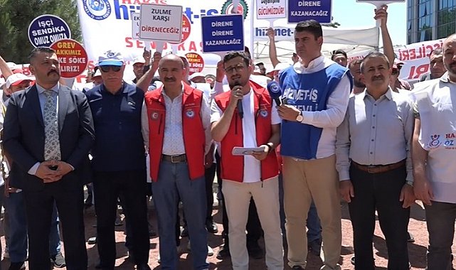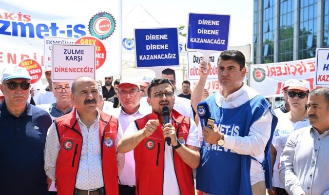 Üyelerin baskıyla sendikadan istifaya zorladıklarını belirten Yeşilyurt, "Toplu iş sözleşmesi müzakerelerinde çalışanları küçümseyen ve haklarını budamaya çalışan bir anlayışla hareket edilmiş, yüzde 47 enflasyona rağmen yüzde 7 gibi komik bir zam teklifi yapılmış, 52 günlük ikramiye 36 güne düşürülmek, yakacak ve eğitim yardımları kaldırılmak istenmiştir. Belediye yönetimi, istifa etmeyen üyelerimizin maaşlarını kesmiş, onları sürgün ve mobbinge maruz bırakmıştır. Buna rağmen sendikamızdan ayrılmayan 49 üyemiz 2025'in Ramazan ayında işten çıkarılmıştır. Belediye binası önünde kurdukları Direniş Çadırında haklı mücadelelerini sürdüren arkadaşlarımız ise belediye başkanının talimatıyla saldırıya uğramış, şube başkanımız darp edilmiş, işçilerimiz yumruklanmıştır. Bu, Türk sendikal tarihinde yüz karası bir saldırıdır" diye konuştu.