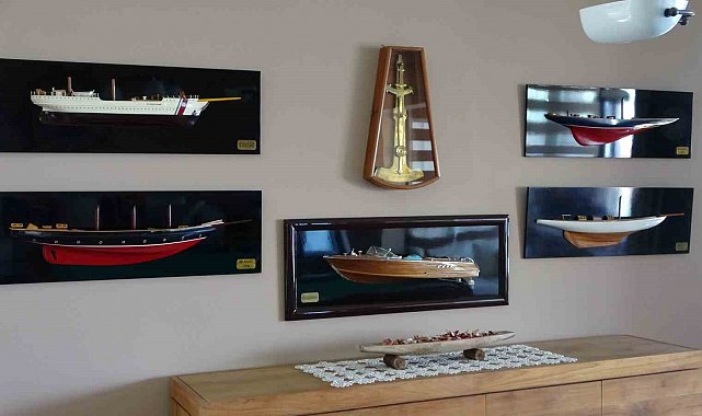 Hobi amaçlı ürettiği maket tekneleri evinin duvarına dekor yaptı