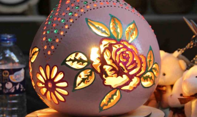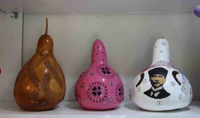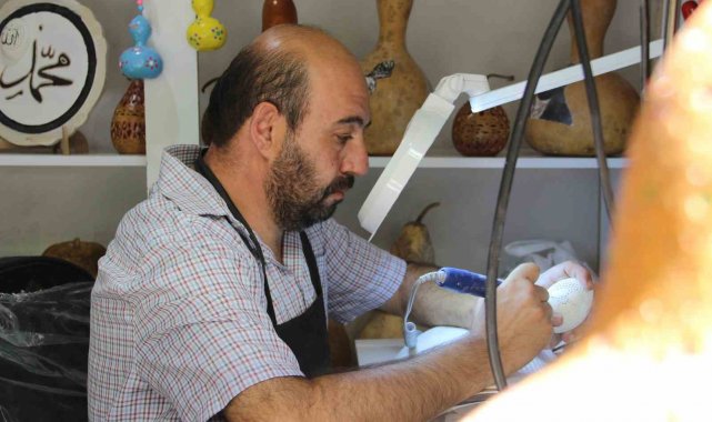 Aynı zamanda servis aracı şoförlüğü yaptığını belirten Deniz Midiliç, "7 yıl önce sosyal medyada gördüğüm yumurta kabuğu ve su kabağı oymacılığına merak saldım. Ustamızın telefonunu bularak kendisiyle iletişime geçtim, hangi teknikleri ve aletleri kullandığını öğrendim. Sosyal medyadaki videolar ve ustamla yaptığımız görüntülü konuşmalar sayesinde, gerekli alet ve edevatları temin edip evimin balkonunda çalışmaya başladım. Zamanla alan dar gelince, Çorum Dikiciler Arastasında küçük bir atölye kiraladım ve oymacılığa orada devam ediyorum. Kaz yumurtası, tavuk yumurtası, devekuşu yumurtası ve su kabakları kullanarak anahtarlık, magnet, dekoratif objeler üretiyorum. Yaptığım her ürüne, müşterinin istediği logo veya arma gibi kişiye özel desenleri de işleyebiliyorum" dedi.