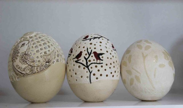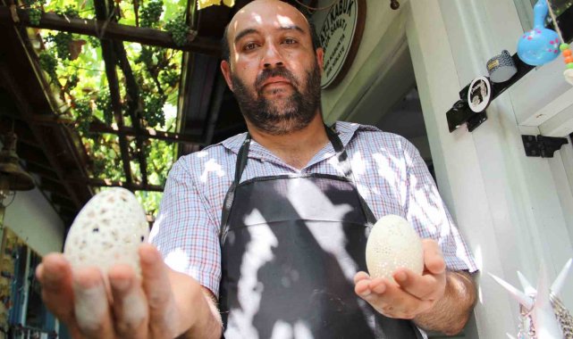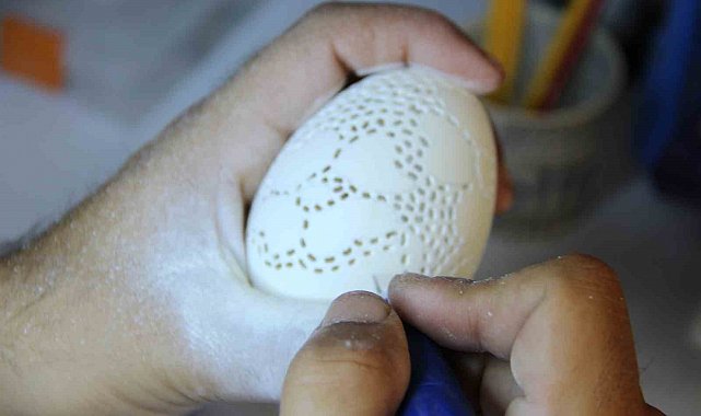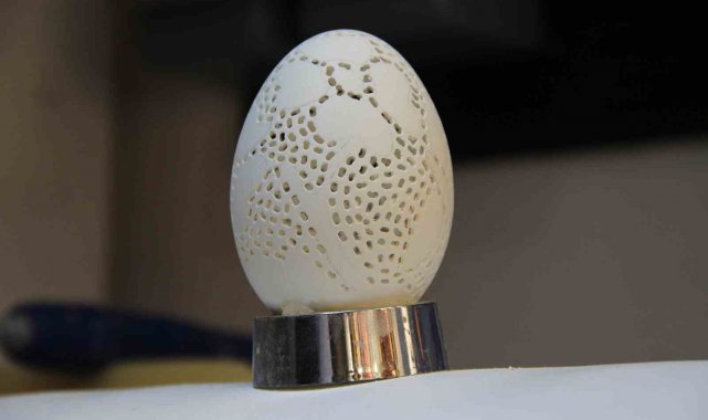 Çorum'da sosyal medyada gördüğü görüntüden etkilenen vatandaş, 7 yıldır tavuk, kaz ve deve kuşu yumurtalarını oyarak adeta sanat eserlerine dönüştürüyor.