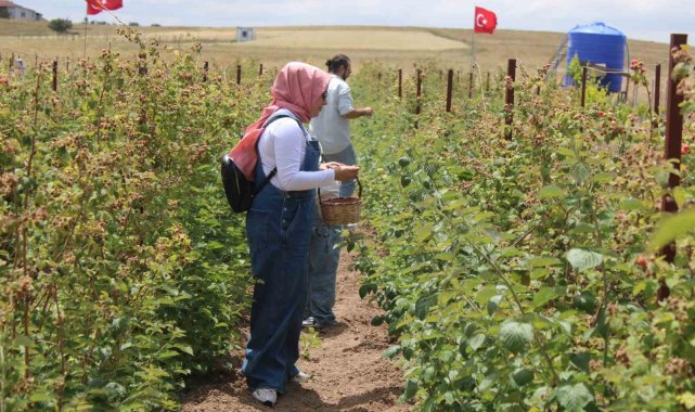Kayseri'de yaşayan Çetin Demir'in 5 yıl önce hobi olarak kurduğu organik bahçede ahududu toplanmaya başlanırken Demir; taleplere yetişmekte zorlandığını aktardı.