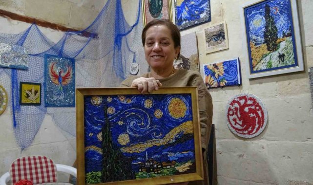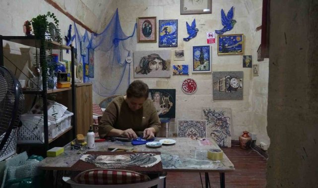 Mozaik sanatçısı Ayşegül Yener, Şahinbey ilçesindeki tarihi Gümrük Han'da açtığı atölyesinde cam ve mermer taşlardan mozaik tablolar üretiyor. Bin bir emek ve zahmet vererek özel yöntemle ürettiği mozaikleri büyük ilgi gören eserlere dönüştüren Yener, 5 yıldır mozaik sanatıyla ilgileniyor.