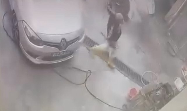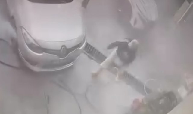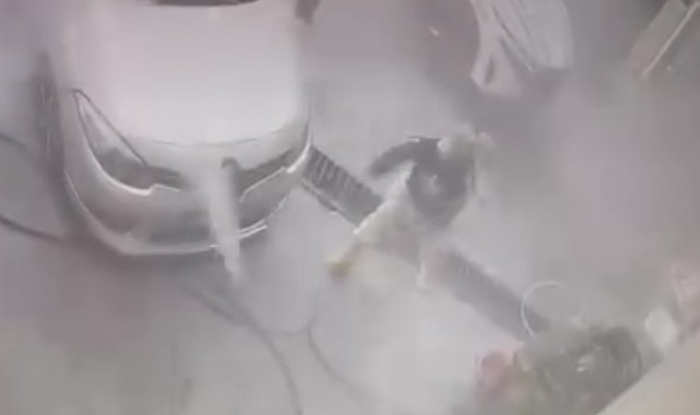 Bursa'nın Yıldırım ilçesinde bir oto yıkamacı müşterisinin bıraktığı aracı yıkamak için tazyikli suyu açtı. Basınçlı suyun etkisiyle elindeki hortumu kaçıran acemi yıkamacı hortumu yakalamak için bir sağa bir sola koştu. Suyla dans edercesine mücadele eden oto yıkamacının renkli anlara iş yerine ait güvenlik kamerasına anbean yansıdı.
