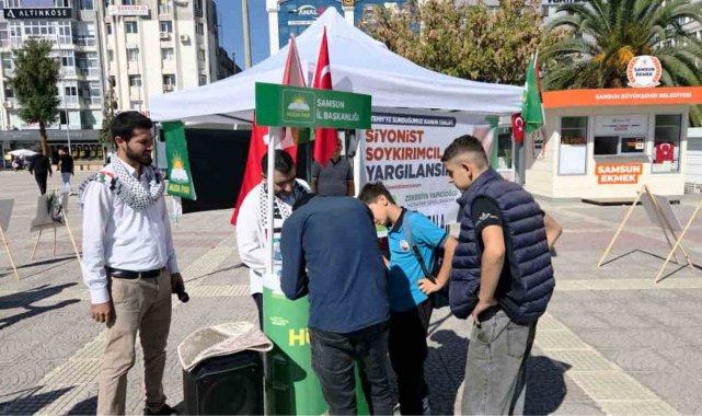 Gazze meselesinin hâlâ tam olarak anlaşılmadığını söyleyen HÜDAPAR Samsun İl Başkan Yardımcısı Ali Durgunsu, "Filistin'de soykırım hâlâ devam ediyor. İnsanlar bombalar altında katlediliyor, açlık da silah olarak kullanılıyor. HÜDAPAR olarak, çifte vatandaş olup soykırıma karışan Türk vatandaşlarının yargılanması gerektiğini düşünüyoruz. Vatandaşlarımızdan bu konuda imza toplamalarını istiyoruz. 2 gün içinde yaklaşık 2 bin imza topladık. Sataşmalara giriyoruz demiyoruz; birkaç kişinin yanlış anlayışını kale almıyoruz. İnşallah onlar da bir gün Gazze meselesini anlayıp buraya imza atarlar" dedi.