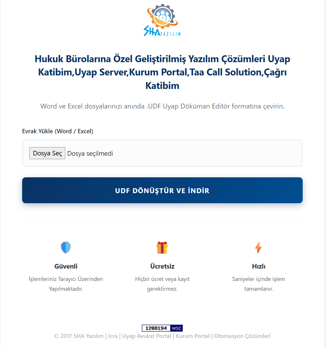 Hukuk Bürolarına Özel Geliştirilmiş Yazılım Çözümleri Uyap Katibim, Uyap Server,Kurum Portal, Taa Call Solution , Çağrı KatibimWord ve Excel dosyalarınızı anında . UDF Uyap Döküman Editör formatına çevirin.DOCX to UDF Dönüştürücü - Word UDF ÇeviriciXlsx to UDF Dönüştürücü - Excel UDF Çevirici