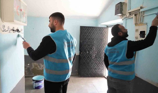 Muş'ta denetimli serbestlik kapsamında kamu yararına çalışma yükümlülüğü bulunan hükümlüler, 23 Nisan Ulusal Egemenlik ve Çocuk Bayramı öncesinde okulda boyama ve tadilat çalışmalarına katıldı.