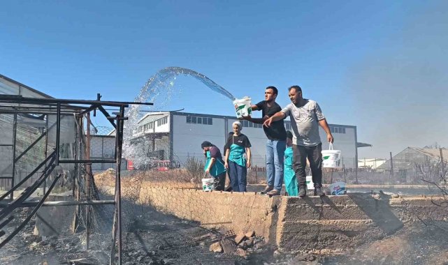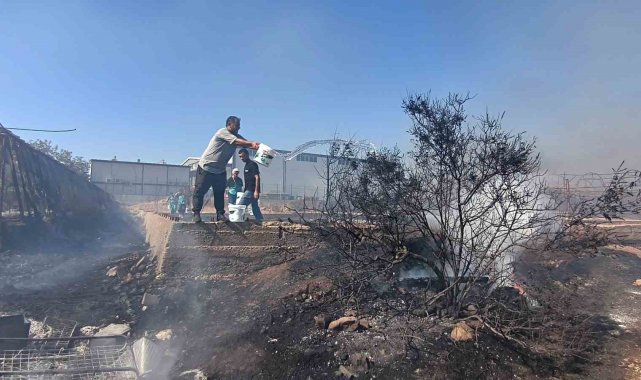 Kova ve hortumlarla yangına müdahale ettiler