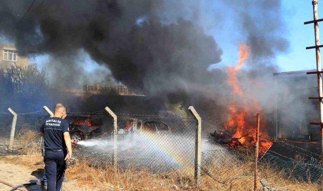 Antalya'da kargılık alanda başlayan ve rüzgarın etkisiyle hızla yayılan yangın ekiplere zor anlar yaşattı. Hurda otomobillerin bulunduğu alana sıçrayan yangında zaman zaman patlama sesleri duyuldu.