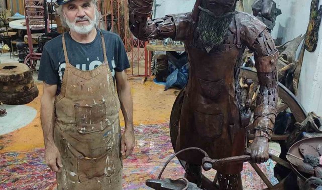 Hurda demirleri sanat eserine dönüştürdü