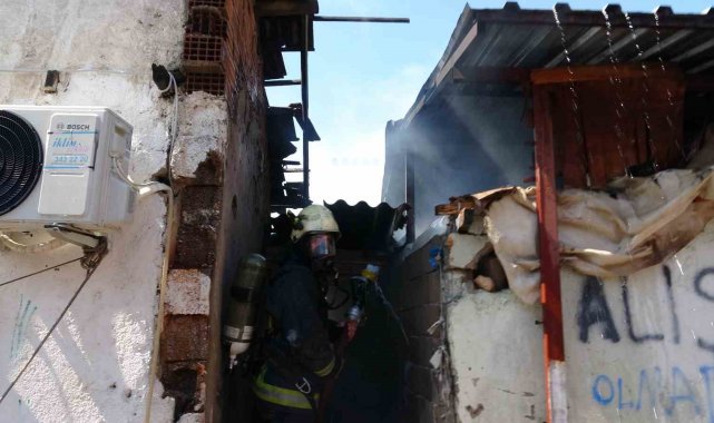 Antalya'da hurda malzemelerden çıktığı belirtilen yangın kısa sürede büyüyerek bitişik 2 gecekonduya sıçradı. Can kaybı ya da yaralanma olmayan yangında 2 gecekondu kullanılamaz hale gelirken, mahalleli sokağa döküldü.