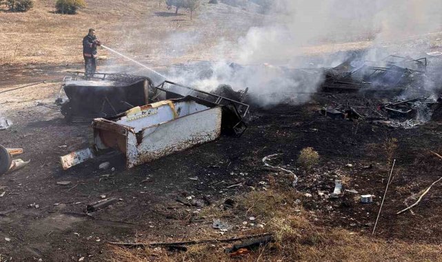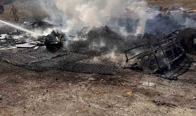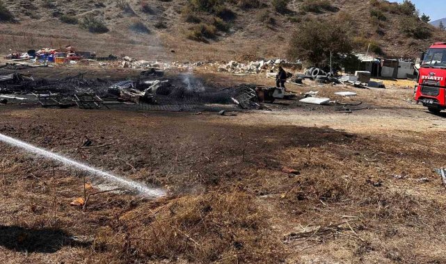 Bolu'nun Mudurnu ilçesinde hurdalık alanda çıkan yangın paniğe neden oldu.