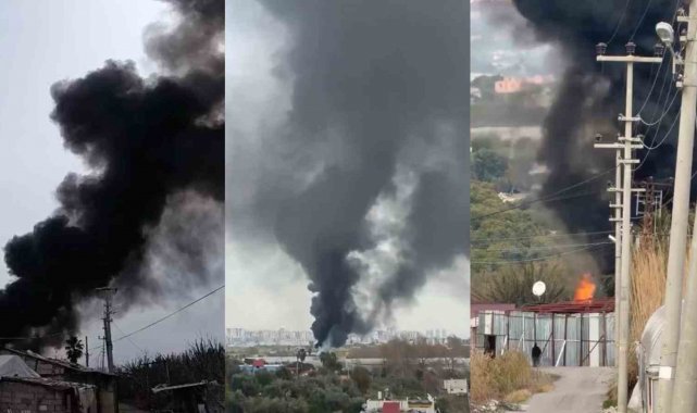 Mersin'in Erdemli ilçesinde hurdalıkta çıkan yangın korku dolu anlara neden olurken, yükselen yoğun duman gökyüzünü adeta siyaha bürüdü.