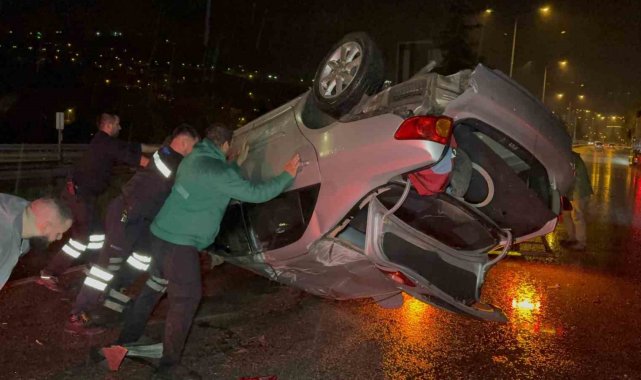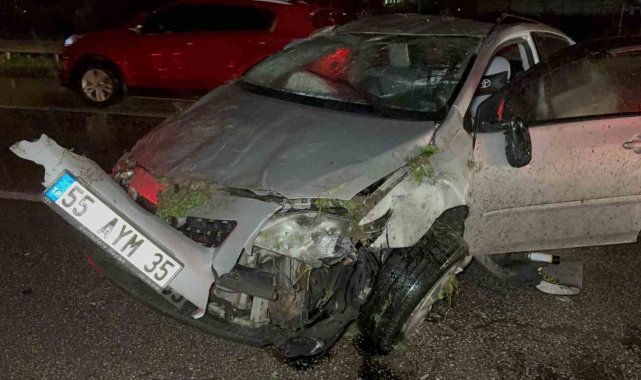 Kaza, Atatürk Mahallesi Çevre Yolu üzerinde saat 22.00 sıralarında meydana geldi. Demirbey Ş. (19) idaresindeki 55 AYM 35 plakalı otomobil, Belediye Evleri istikametinden Kavak yönüne seyir halindeyken sürücüsünün direksiyon hakimiyetini kaybetmesi sonucu kontrolden çıkarak refüje çarpıp takla attı. Sürücü ile araçta bulunan 4 kişi kazayı yara almadan atlatırken, otomobilde büyük çapta maddi hasar meydana geldi.