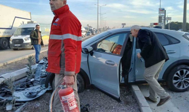 Edinilen bilgiye göre, Bursa-Çanakkale istikametine seyreden 10 ATK 886 plakalı otomobilin sürücüsü, direksiyon hâkimiyetini kaybetti. Orta refüjdeki aydınlatma direğine çarpan otomobile çevredeki akaryakıt istasyonundan temin edilen yangın söndürme ekipmanlarıyla müdahale edildi.