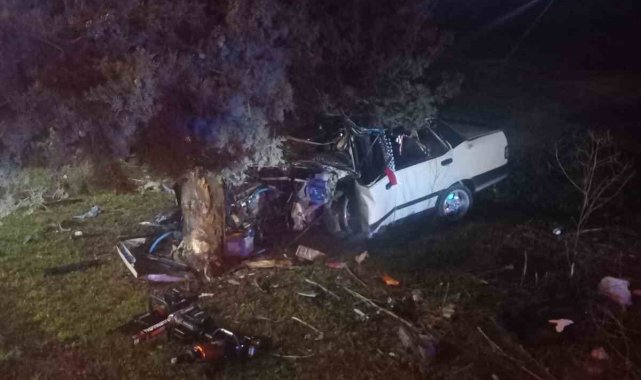 Balıkesir'de kontrolden çıkarak ağaca çarpan Tofaş otomobilin sürücüsü hayatını kaybetti.