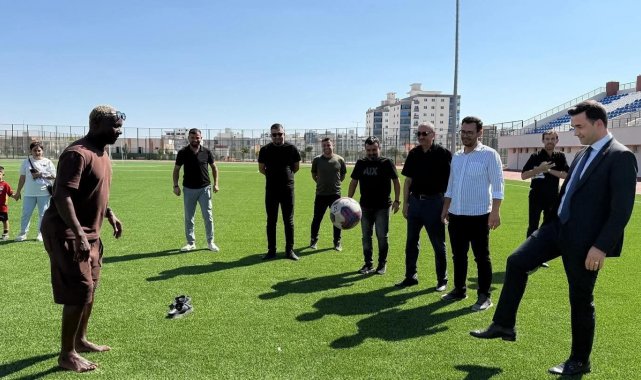 Çocukların yoğun ilgisiyle karşılaşan Yattara, motivasyon mesajları verirken, Kaymakam Kaya ile birlikte sahada top sektirdi.