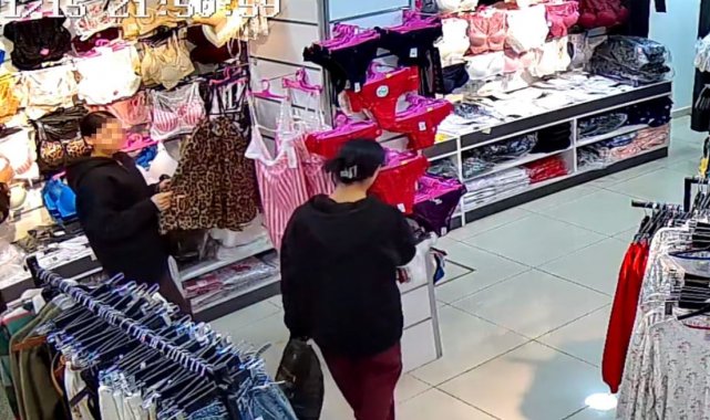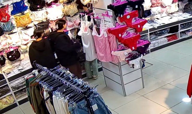 Edirne'de bir giyim mağazasına giren 3 genç kızın, iç çamaşırı ve çorap gibi ürünleri çaldığı anlar iş yerinin güvenlik kameralarına yansıdı.