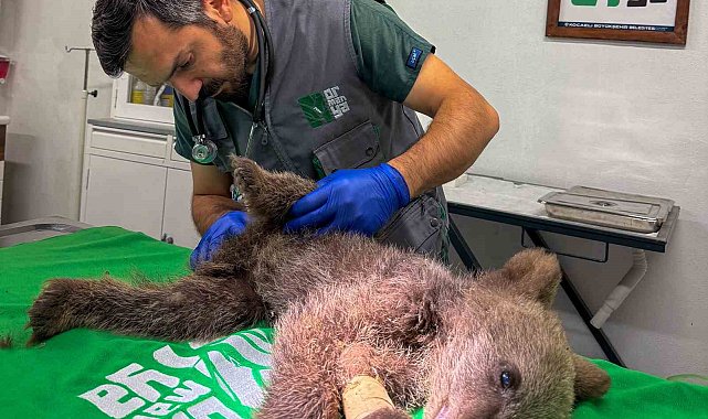 Sakarya'da bitkin halde bulunan yavru ayı, Sakarya Doğa Koruma ve Milli Parklar ekiplerince Kocaeli'deki Yaban Hayatı Kurtarma ve Rehabilitasyon Merkezi'ne getirildi. Uzman veteriner hekimlerce yapılan muayene sonucunda iç kanaması ve enfeksiyonu olduğu tespit edilen 4 aylık olduğu düşünülen yavru ayı tedavisi için rehabilitasyon alanına yerleştirildi. Bakım altına alınan yavru ayının rehabilitasyon süreci, yaban hayatına adaptasyon kriterleri doğrultusunda yürütülüyor. Uzman veteriner hekimler ve yaban hayatı biyologlarının gözetiminde sürdürülen süreçte, bireyin doğal davranış repertuvarını koruyabilmesi amacıyla insan teması asgari seviyeye indirildi.