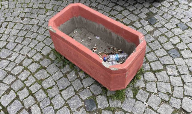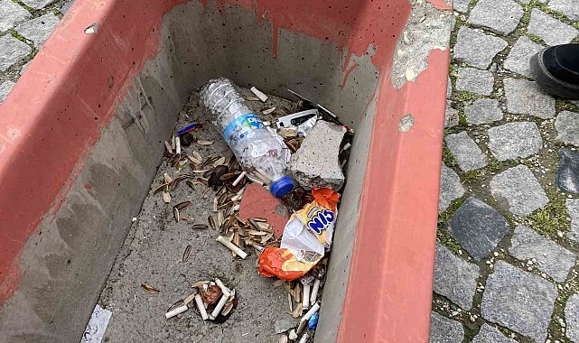 Eskişehir'in en turistik noktalarından birisi olan Tarihi Odunpazarı Evleri bölgesinde bazı duyarsız vatandaşlar içerisinde çiçek olması gereken boş beton saksıyı çöp kutusuna çevirdi.