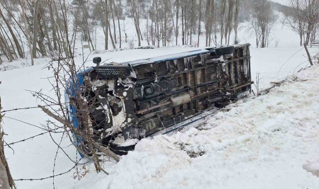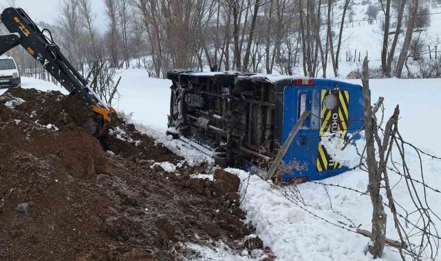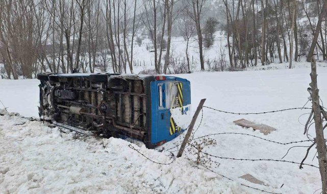 İçerisinde öğretmenlerin de bulunduğu servis minibüsü devrildi: 2 yaralı