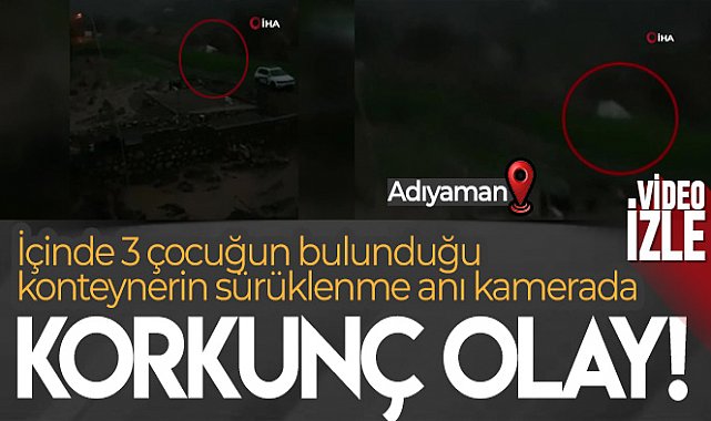 Adıyaman’ın Tut ilçesinde kayıp 3 çocuğun içinde bulunduğu konteynerin sürüklendiği anlar amatör kamera tarafından kaydedildi.