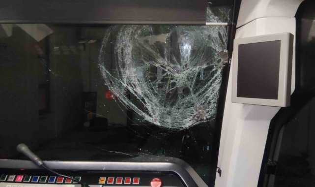 İçine taş sıkıştırılarak atılan kartopu, tramvayın camını kırdı