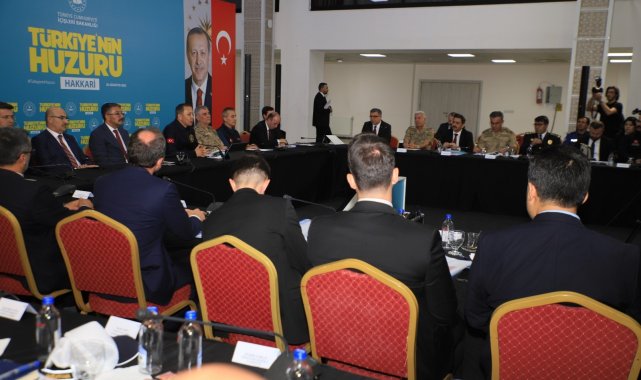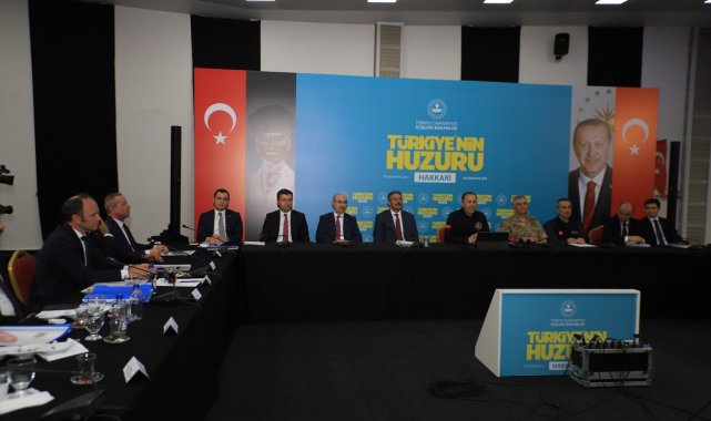 "Huzur ve Güvenlik Toplantısı"na katılmak üzere Hakkari'ye gelen İçişleri Bakanı Ali Yerlikaya ve beraberindekiler, Hakkari Valisi Ali Çelik ve kurum amirleri tarafından karşılandı. Hakkari Öğretmenevi'nde düzenlenen programda konuşan Bakan Yerlikaya, "Sizleri; Kudüs sokaklarına adını veren, kadim serhat şehrimiz Hakkari'de düzenlediğimiz Huzur ve Güvenlik Toplantısı'nda, sevgi ve saygıyla selamlıyorum. Biraz önce, Valimizle, mülki idare amirlerimizle, güvenlik güçlerimizle bir araya geldik. Hakkari'deki genel güvenlik ve asayiş hizmetleri kapsamında yürütülen çalışmalar hakkında bilgi aldık, değerlendirmelerde bulunduk. Sayın Cumhurbaşkanımızın liderliğinde; vatan toprağımızın her köşesinde; aynı kalkınma ruhu, aynı hizmet azmiyle ilerliyoruz. Bu yolda şehir ayrımı yok. Doğusu, batısı, kuzeyi, güneyi yok. Tek bir istikamet var. O da büyük ve güçlü Türkiye. İşte bu hedeflerin gerçekleşmesinde en büyük gücümüz kardeşliğimizdir, birlik ve beraberliğimizdir. Aynı toprağın sinesinde, aynı bayrağın gölgesinde millet olma irademizdir. Sayın Cumhurbaşkanımızın da ifade ettikleri gibi; 'Türkiye Cumhuriyeti, Alevi'nin de Sünni'nin de Cumhuriyetidir. Türk'ün olduğu kadar Kürt'ün de Cumhuriyetidir.' Bu ülkenin ruh köprüleri sağlamdır. Sözü de birdir, duası da birdir. Derdi de birdir, devası da birdir. Ve her bir vatandaşımızın hakkının, hukukunun, huzur ve güvenliğinin teminatı devletimizdir. Bin yıldır birlikte yürüdüğümüz bu yolu, ebediyen yürüyeceğimizden hiç kimsenin şüphesi olmasın" dedi.