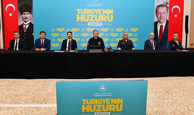 Çeşitli ziyaret ve incelemelerde bulunmak üzere Kırşehir'e gelen Bakan Yerlikaya, ziyaret ettiği Kırşehir Valiliğinde protokol üyeleriyle bir araya geldi. Esnafı da ziyaret eden Bakan Yerlikaya, vatandaşlarla sohbet ederek taleplerini dinledi. Ardından bir otelde düzenlenen "Türkiye'nin Huzuru Toplantısı"na katılan Bakan Yerlikaya, toplantıda Kırşehir'in asayiş durumu ve yürütülen güvenlik çalışmalarının ele alındığını, İçişleri Bakanlığının huzur için mücadeleye devam ettiğini söyledi. Yerlikaya, "Türkiye'nin dört bir yanında iç güvenliği sağlamak, kamu düzenini korumak ve vatandaşların huzur içinde yaşamasını temin etmek amacıyla çalışmalarını kararlılıkla sürdürüyoruz. Bakanlık, sadece ülke içinde değil, sınır ötesinde de organize suç örgütleri ve terör yapılanmalarıyla etkin mücadele yürütüyor" dedi.
