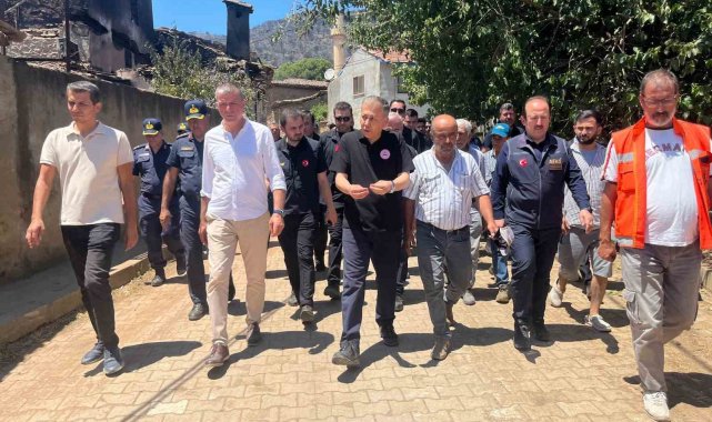 İçişleri Bakanı Ali Yerlikaya, İzmir'in Ödemiş ilçesinde orman yangınından etkilenen köylerde incelemelerde bulundu. İzmir Valisi Süleyman Elban ve AFAD yetkililerinden yangından etkilenen köyler hakkında bilgi alan Yerlikaya, inceleme sırasında köylüleri dinledi. Burada basın mensuplarına açıklamalarda bulunan Bakan Yerlikaya, "25 Haziran'dan düne kadar 10 gün boyunca İzmir, güzel İzmir'imizde, ilçelerinde, köylerinde orman yangını boyunca hep gerçekten çok seferberlik ruhuyla bir mücadele, söndürme mücadelesi yapıldı. Ve şükürler olsun ki artık yangınla ilgili devam eden bir durum kalmadı. Öncelikle sözlerime başlamadan önce yangından etkilenen kıymetli köylerimize, ilçelerimize ve güzel İzmir'imize geçmiş olsun dileklerimi iletmek istiyorum ve Allah tekrarından korusun diyorum" ifadelerini kullandı.