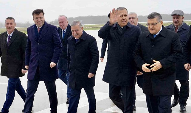 İçişleri Bakanı Ali Yerlikaya, Sinop Valisi Mustafa Özarslan, AK Parti Sinop Milletvekili Nazım Maviş, Sinop Üniversitesi Rektörü Prof. Dr. Şakir Taşdemir, Sinop Belediye Başkanı Metin Gürbüz ve AK Parti Sinop İl Başkanı Yakup Üçüncüoğlu tarafından Sinop Havalimanında karşılandı.