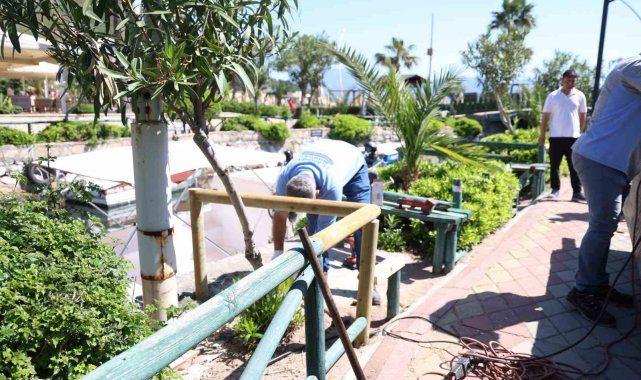 İçmeler'de dere kenarında bulunan ahşap korkuluklar ile dinlenme alanlarında yer alan bankların zamanla yıpranması üzerine bölge, Marmaris Belediyesi tarafından bakım programına alındı. Makine İkmal, Bakım ve Onarım Müdürlüğü koordinesinde yürütülen çalışmalar kapsamında ekipler, kullanım ömrünü tamamlayan ahşap korkulukları yenilerken, banklarda da gerekli onarım işlemlerini gerçekleştiriyor.