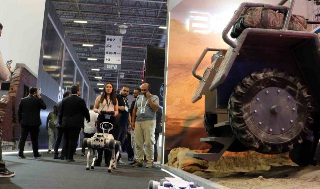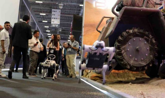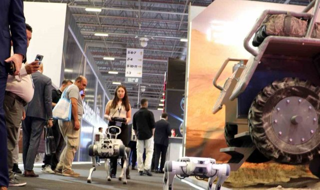 IDEF'te sergilenen dört ayaklı insansız kara aracı olan robot köpekler, hem zıplıyor, hem takla atıyor hem de selam veriyor. Robot köpeklere ziyaretçiler yoğun ilgi gösterdi.