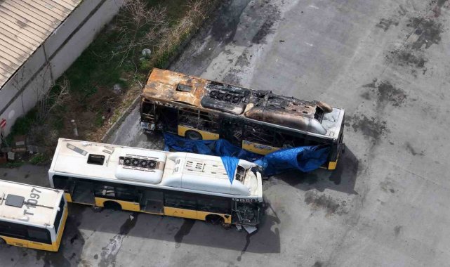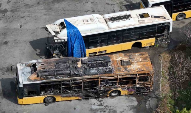 İETT garajları otobüs mezarlığına dönüştü, yanan otobüsler havadan görüntülendi