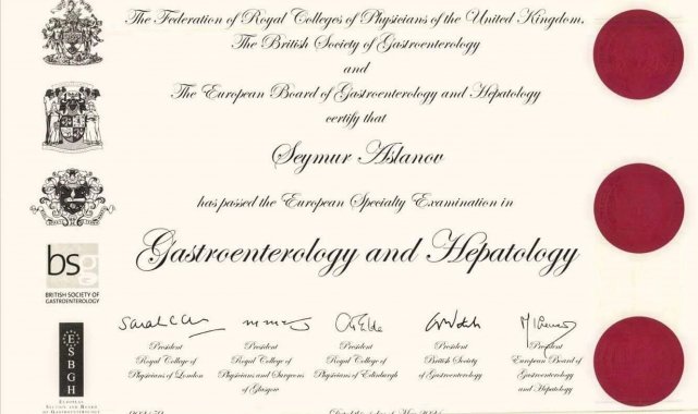 İEÜ Medical Point Hastanesinden Uzm. Dr. Seymur Aslanov, Avrupa Gastroenteroloji ve Hepatoloji Board Sertifikası'nı aldı.
