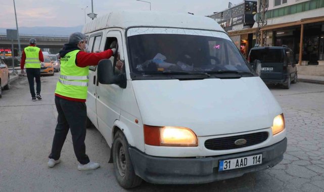 İftara trafikte yakalanan vatandaşların iftarlıkları Hatay Büyükşehir Belediyesi'nden