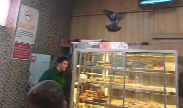 Çamlıca Mahallesi Ulusal Egemenlik Bulvarı'nda iftar vakti tüm masaların dolu olduğu bir lokantaya giren güvercin, adeta ortalığı karıştırdı. Kuş dışarıya çıkabilmek için içeride oradan oraya uçuşurken ilginç anlar ortaya çıktı. Korkan hayvan, lokanta çalışanlarının müdahalesiyle güçlükle dışarıya çıkarıldı. Yaşananlar ise bir vatandaşın cep telefonu kamerası ile kayıt altına alındı.