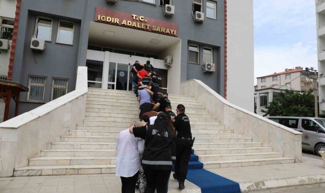 Iğdır Cumhuriyet Başsavcılığı koordinesinde İl Emniyet Müdürlüğü ekiplerince yürütülen soruşturmalar kapsamında, adliye çalışanlarına yönelik rüşvet, insan ticareti, fuhuş ve uyuşturucu madde imal ve ticareti suçlarıyla ilgili bir dizi operasyon gerçekleştirildi. İnsan ticareti, fuhuş ve uyuşturucu suçlarının işlendiği tespit edilen Melekli Beldesi'nde faaliyet gösteren 9 eğlence yerine yönelik yapılan baskınlarda yakalanan 12 şüpheli, sabah saatlerinde polis ekiplerince Iğdır Adliyesi'ne getirildi. Rüşvet suçlamasıyla gözaltına alınan diğer 7 şüphelinin ise emniyetteki işlemleri devam ediyor. Soruşturma çok yönlü olarak sürdürülüyor.