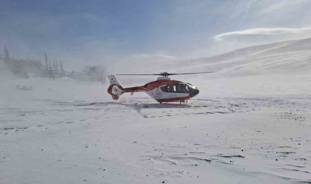 Iğdır'da fırtına ve tipi yolu kapatınca hasta ambulans helikopterle hastaneye ulaştırıldı
