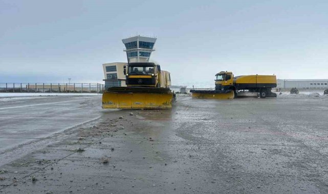 Iğdır'da dün akşam saatlerinde etkili olan kar yağışı sonrası birçok köy yolu kapanırken havalimanında da güvenli uçuş için çalışmalar devam ediyor.