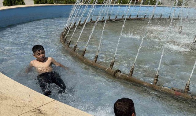 Iğdır'da kavurucu sıcakta tehlikeli serinlik, çocuklar süs havuzuna girdi