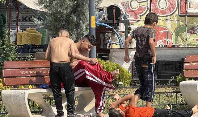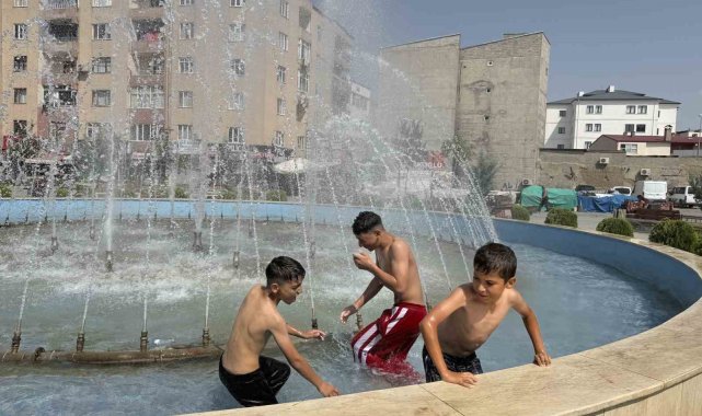 Iğdır'da hava sıcaklığının 40 dereceyi bulmasıyla birlikte serinlemek isteyen çocuklar, tehlikeyi hiçe sayarak Şube Sokak'ta bulunan süs havuzuna girdi. Derinliği yaklaşık 30 santimetre olan ve içerisinde elektrik kablolarının bulunduğu süs havuzu, çocuklar için ciddi riskler taşımasına rağmen yoğun ilgi gördü. Uyarı levhalarına ve yasağa rağmen balıklama suya atlayan çocuklar, sıcak havanın etkisinden bir nebze olsun kurtulmaya çalıştı. Süs havuzuna giren çocuklar; "Hava çok sıcak geldik burada suya girdik. Deniz yok havuz 250 tl ona da paramız yok dedi" dedi. Havuzdan çıkan çocuklar havuz yanında güneşlenmeyi de ihmal etmediler.