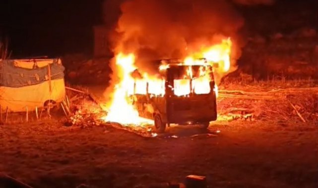 Iğdır'da muhtara ait minibüs yandı: Kundaklama şüphesi