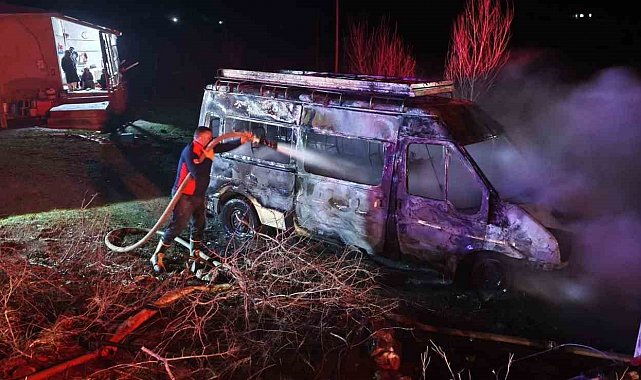 Iğdır'ın Tuzluca ilçesine bağlı Katırlı köyünde, muhtar Hanifi Kızıltaş'a ait köy servisi ve öğrenci servisi olarak da kullanılan minibüs gece saatlerinde henüz bilinmeyen bir nedenle alev aldı. Kısa sürede büyüyen yangın çevrede paniğe neden oldu. İhbar üzerine olay yerine sevk edilen itfaiye ekipleri yangına hızlı şekilde müdahale ederek kontrol altına aldı. Olayda can kaybı ya da yaralanma yaşanmazken, araç kullanılamaz hale geldi. Yangının çıkış nedenine ilişkin inceleme başlatılırken, olayda kundaklama ihtimali üzerinde durulduğu öğrenildi. Yetkililer, yangınla ilgili geniş çaplı soruşturma başlattı.