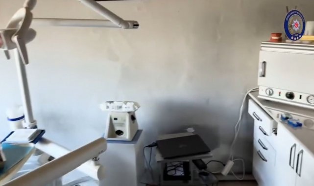 Tuzluca İlçe Emniyet Müdürlüğü ekipleri, diş hekimi diploması bulunmayan 2 kişinin ilçe merkezinde yasa dışı diş çekimi, tedavi ve protez uygulamaları yaptığını tespit etti. Belirlenen adrese operasyon düzenleyen ekipler, diş kamerası, dolgu makinesi, mikromotor başlıkları, hava-su şırıngası, çok sayıda enjektör ve ağrı kesici çözeltiler gibi tıbbi cihaz ve malzemelere el koydu. Klinikte yapılan aramada ayrıca 21 bin 400 Amerikan doları ve 65 bin 900 TL bulundu. Şüpheliler gözaltına alınırken, olayla ilgili soruşturmanın sürdüğü bildirildi.